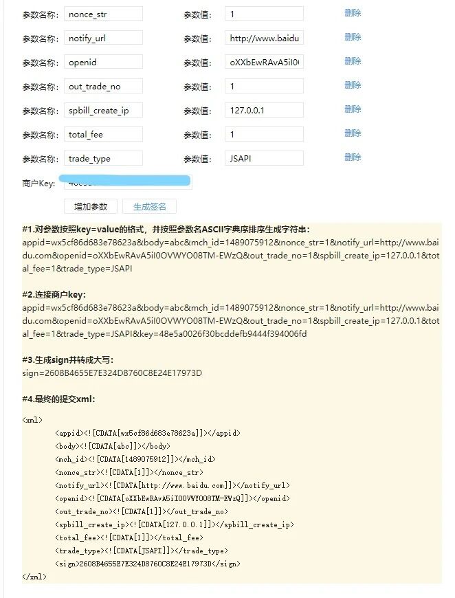 我已经用微信支付自带的api生成的xml参数也不行 但是我密钥别的地方还在运行 我是真的不知道哪里有问题了