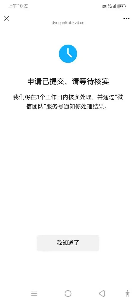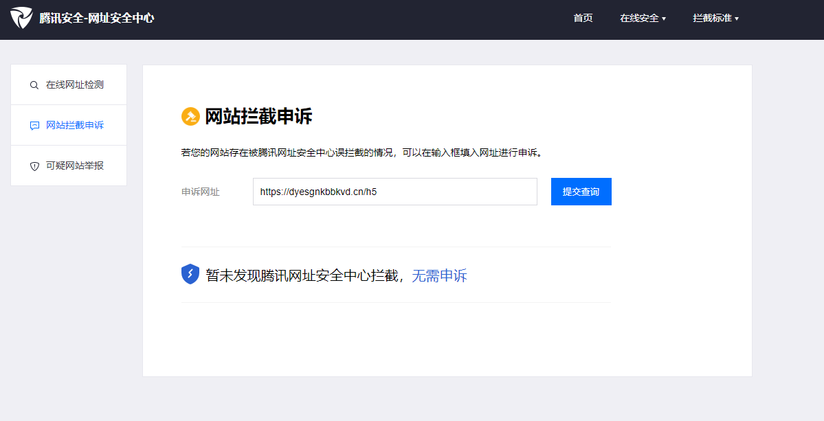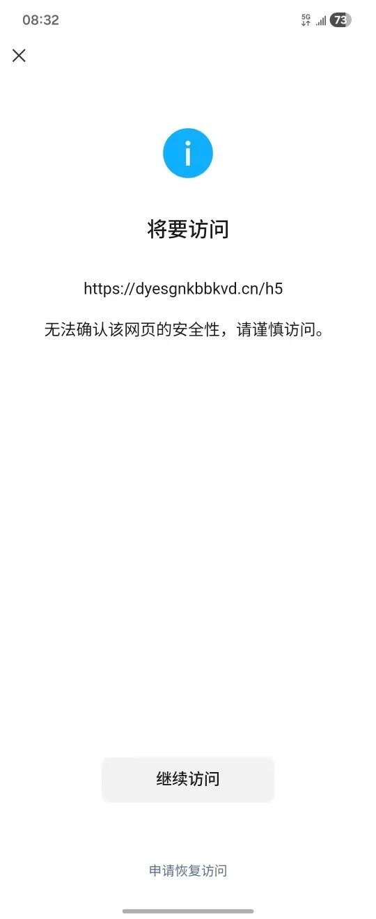 请关闭链接https://dyesgnkbbkvd.cn/h5‘无法确认该网页的安全性,请谨慎访问’的提示,本网站域名早已备案,网站内容合法合规,根据《微信外部链接内容管理规范》及客服指引和腾讯安全-进行自查核实,未发现拦截网址和违规网址。本域名备案号:粤ICP备2025492452号-4 ,微信访问提示截图,域名备案截图 ,腾讯安全中心截图 ,工信部官网ICO备案查询截图 ,均列举如下: