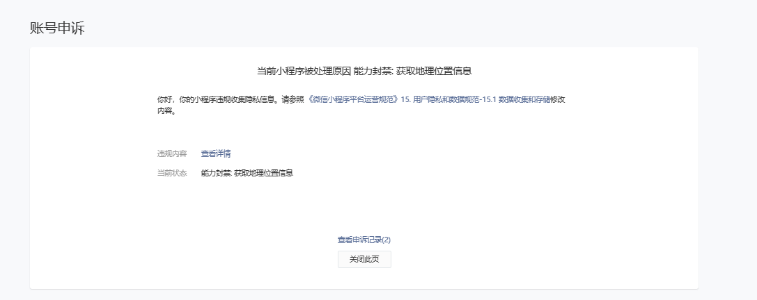 你好,账号:wxe9d15fa67aed52d7,违规项目已整改,申请已成功,但分享功能还未恢复,请官方大大回复一下。