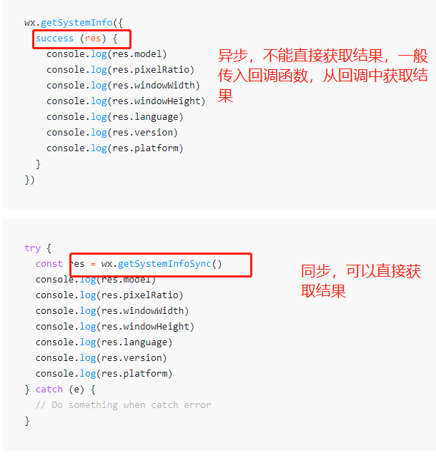 都说【getSystemInfoSync 是同步接口,getSystemInfo是异步接口】,直白点:假设获取设备信息需要200ms,同步就是调用时需要等200ms,获取完后才能去干别的?异步就是调用后就去干别,先不用管,不用干等200ms?