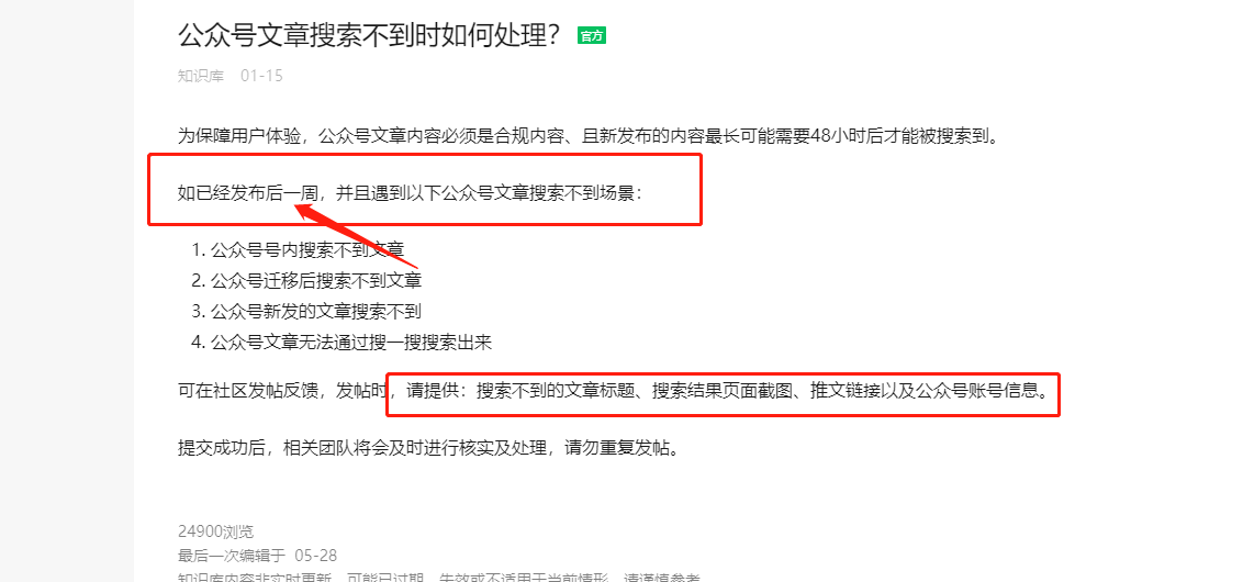 你好,看了下链接,我的状况属于4.所有文章无法被搜索到,公众号名称:米兰一二一 原始id:gh_7ad42734a7b7 ,截图有上传你看下,完整的标题也搜不出来,一般读过的内容不是会率先推荐嘛。28号开始搜索不到的,没违规也没接广告,其他互动功能都正常,公众号名称搜得到,就是搜不到文章。拜托尽快处理下,谢谢。还需要其他信息我再补充。
