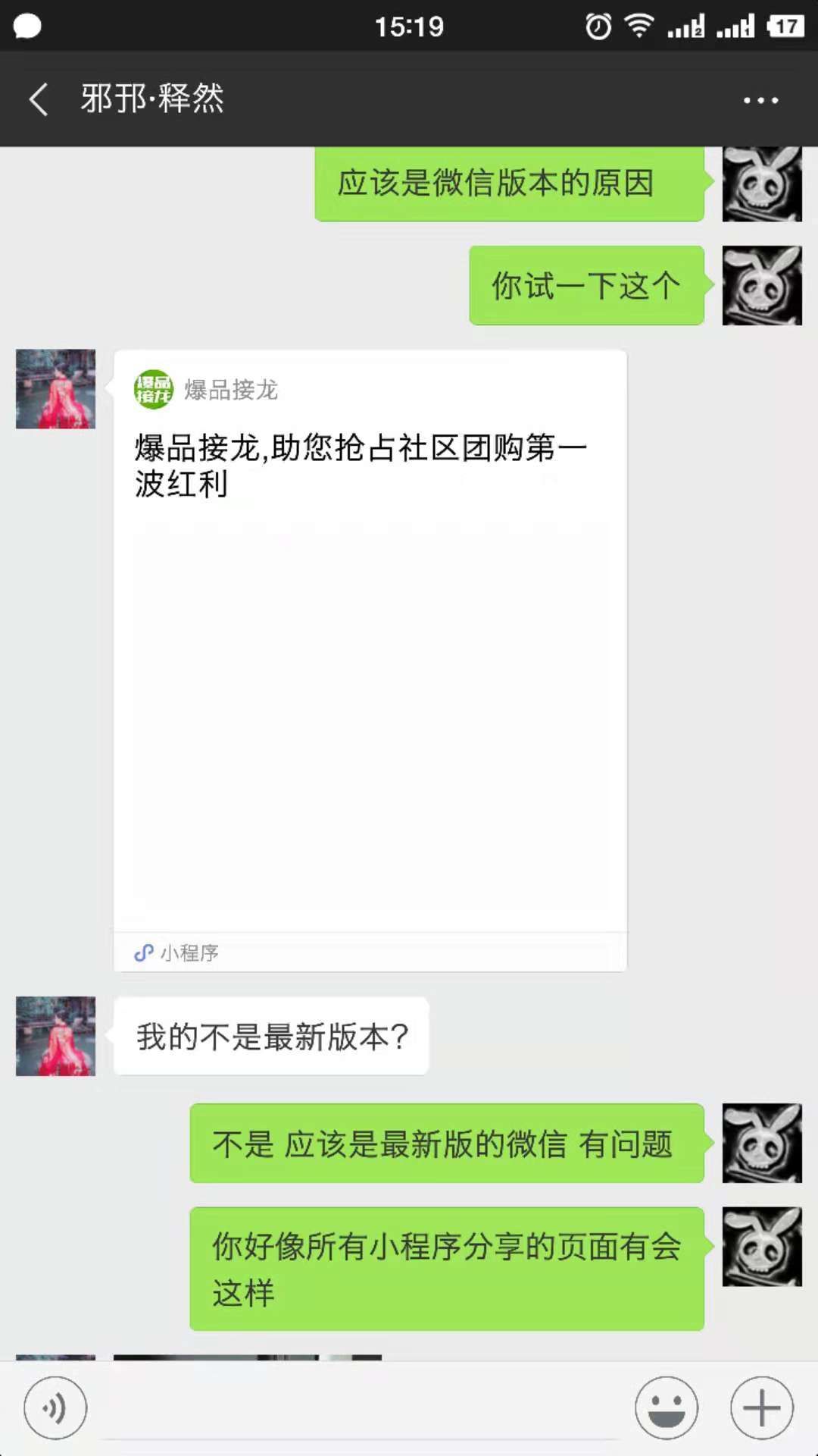 多个用户ios升级到最新的微信版本,出现小程序卡片无法截图的bug,灰色,尝试过小游戏和其他的小程序页面都是这样