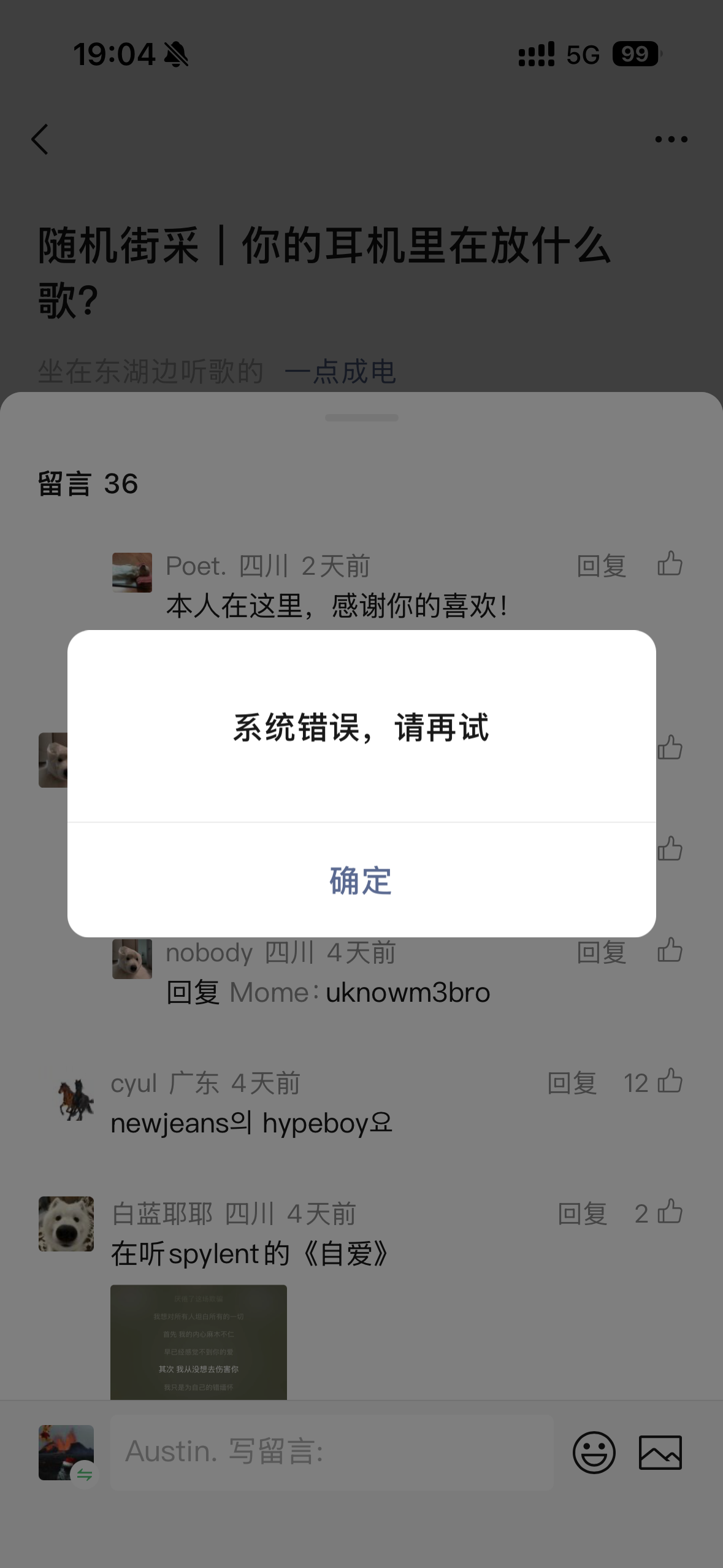 每次提交回复都显示“系统错误,请再试”,再试也没用