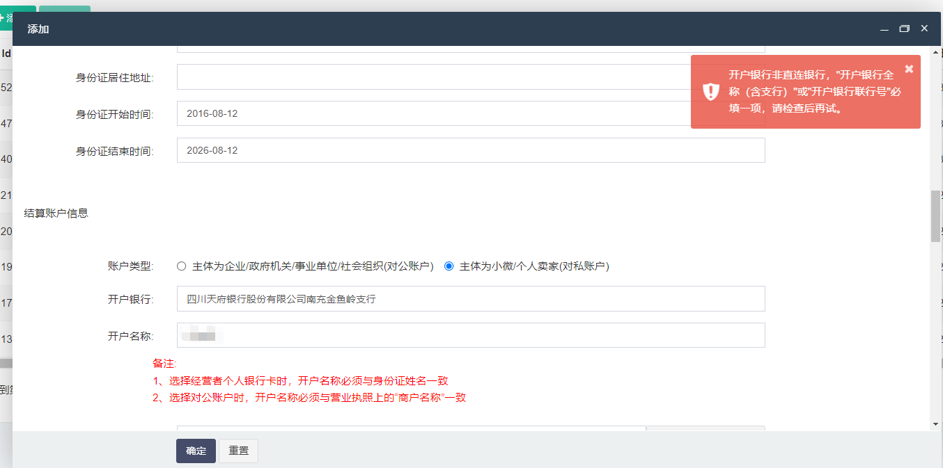 填写的按照开户银行对照表下载的填写的,返回的还是开户银行非直连银行,"开户银行全称(含支行)"或"开户银行联行号"必填一项。
