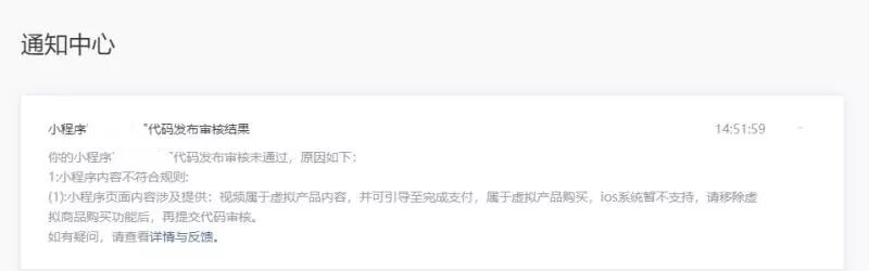 知道审核不通过的原因后,立马对小程序做了设备识别,通过小程序wx.getSystemInfo方法,获取设备类型,如果是iOS端设备,则不显示购买按钮。本以为就可以过审,但是官方还是以上边的理由,让我关闭支付之后再次尝试提交审核。