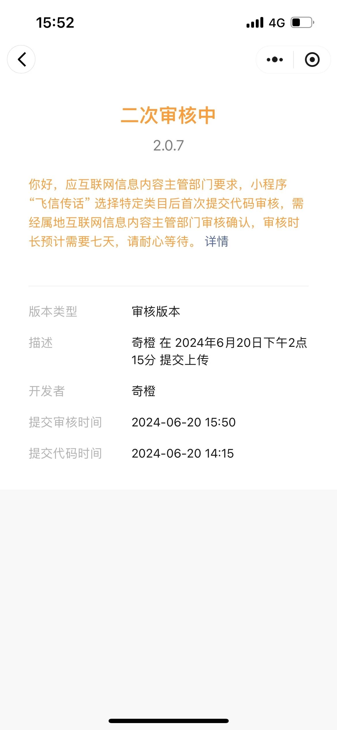 你好,经核实,你的小程序二次审核版本已完成通过,当前最新版本正在审核队列中辛苦耐心等待审核。审核将以实际提交的小程序服务内容为准。