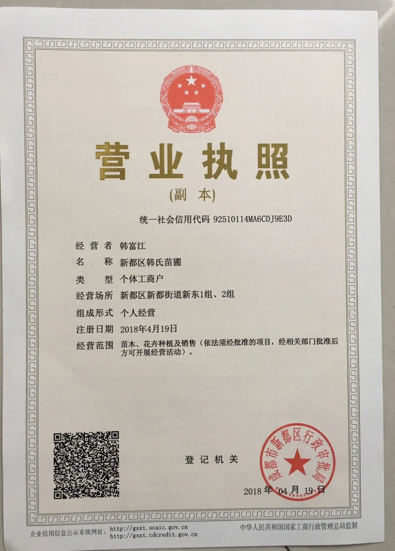 营业执照: