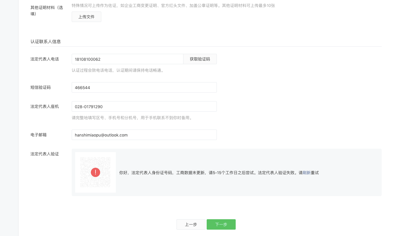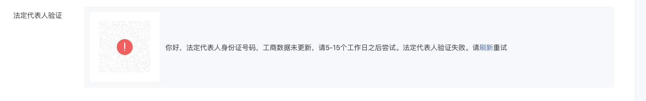 你好,核查发现填写的主体名称与营业执照上的主体名称不一致,故法人验证失败。请严格按照营业执照的主体名称填写。