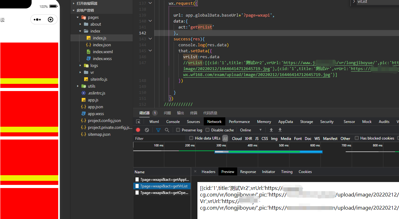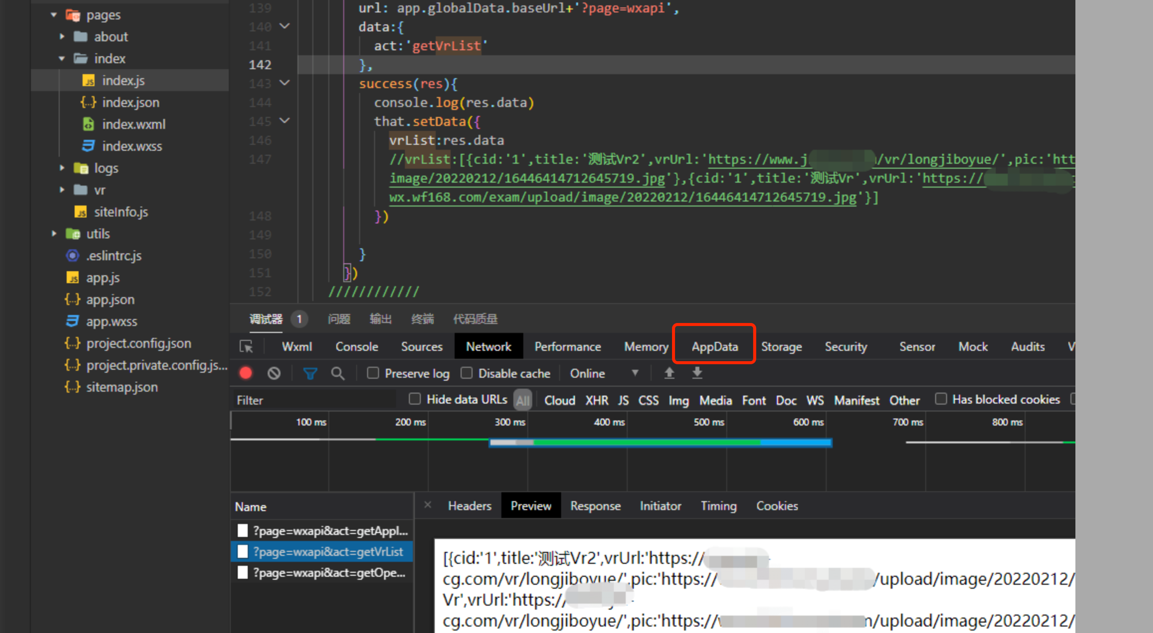 that.setData({vrList: JSON.parse(res.data)})因为你返回的可能不是标准的JSON数据,如果是JSON的话在开发者工具看到是这样的: