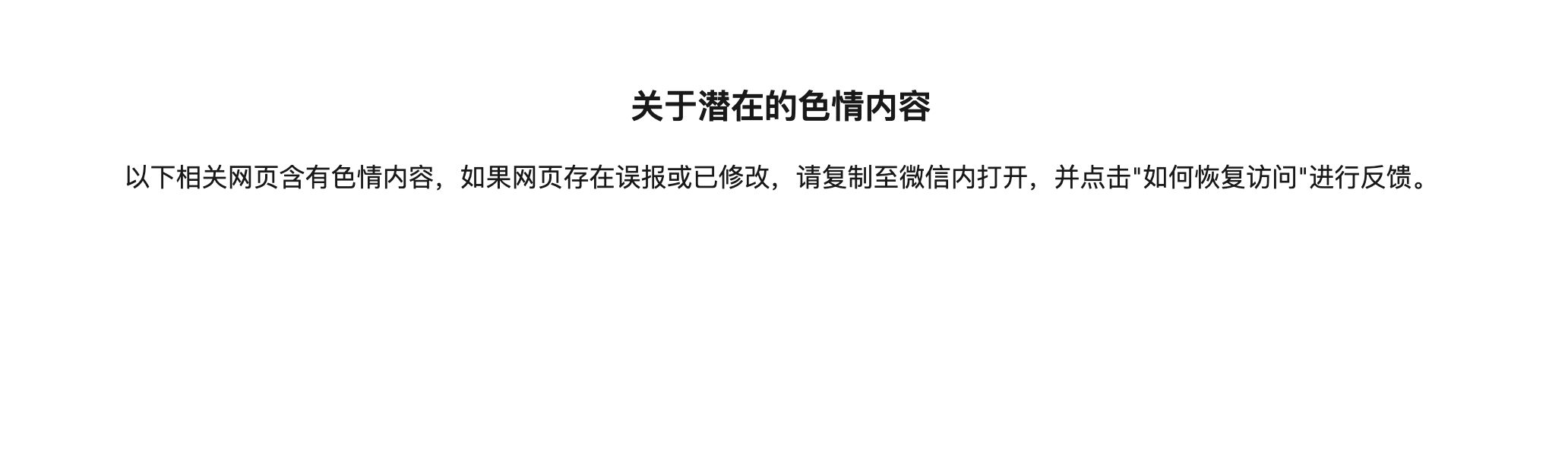 2、点击下方的“申请恢复访问”按钮,没有申诉按钮,提示有色情内容,但是我们网站跟色情毫不相干,麻烦帮排查下。