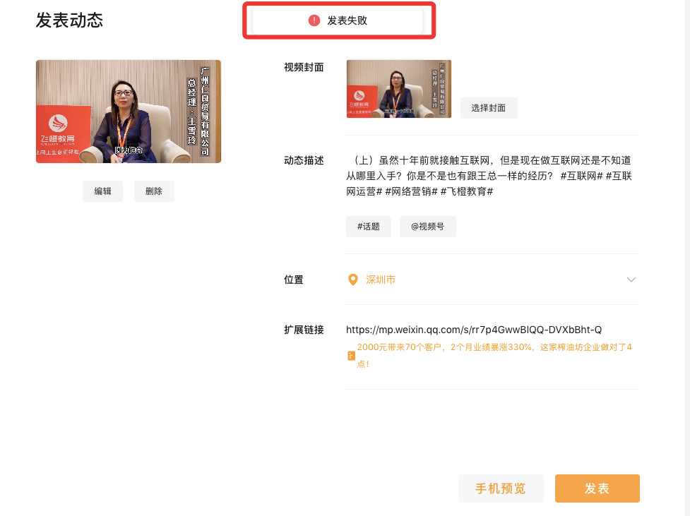 3. 微信版本号:PC端网页视频号助手,一直显示发表失败