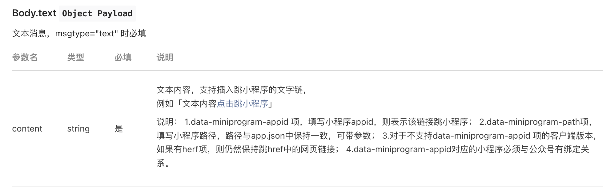 但是在微信群发消息中并没有找到这个支持,想问下微信群发消息发文本消息支持小程序链接吗?