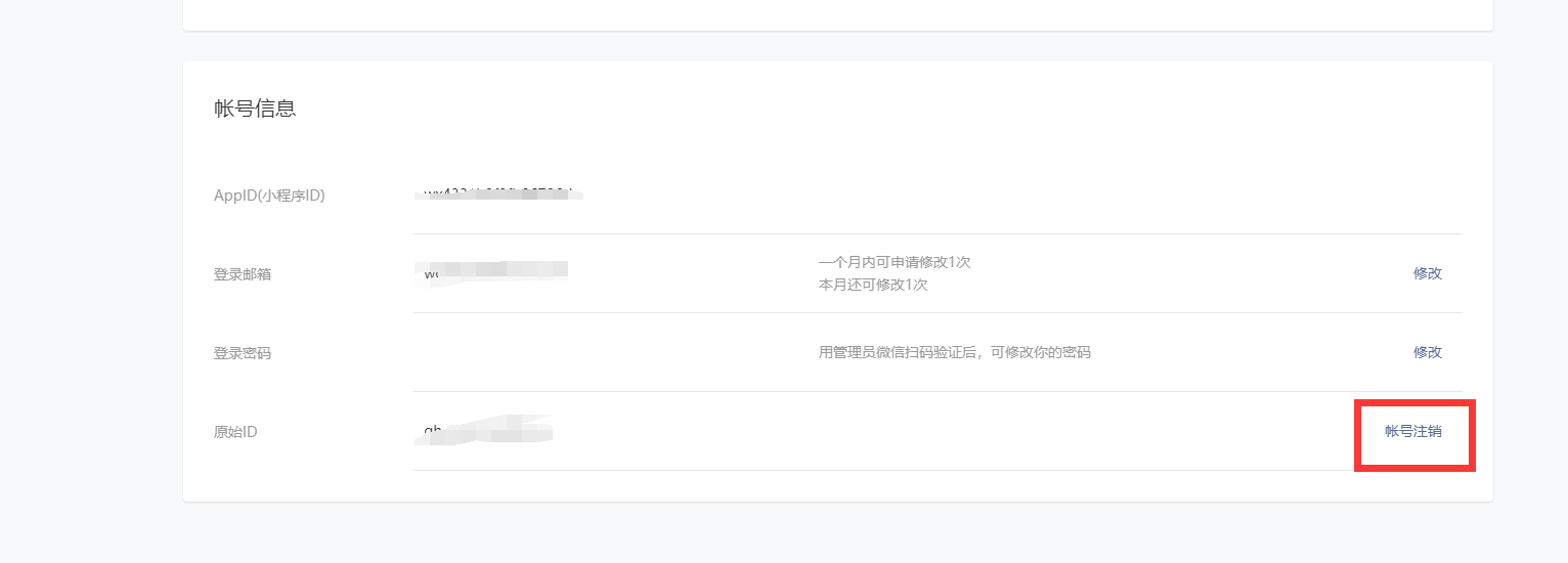 小程序设置里有注销账号功能