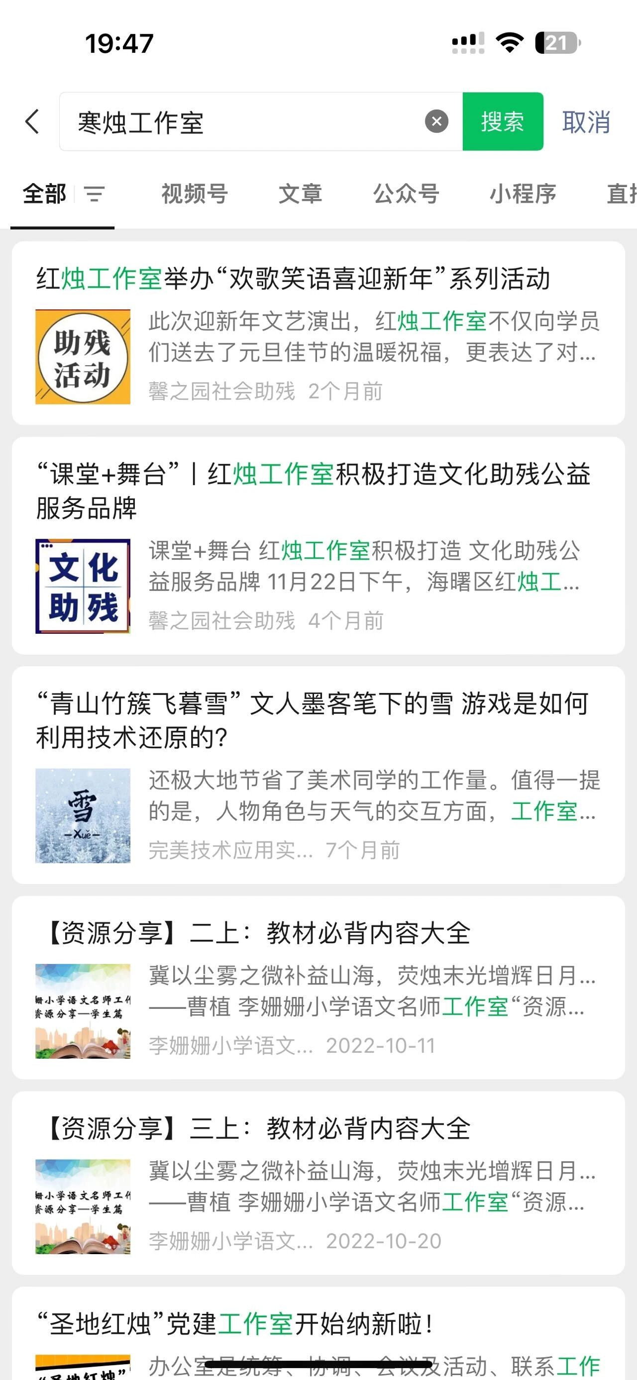 别的公众号都能正常搜索,我的只有点击公众号之后再搜索才可以,寒烛工作室,希望技术人员帮忙看看谢谢🙏