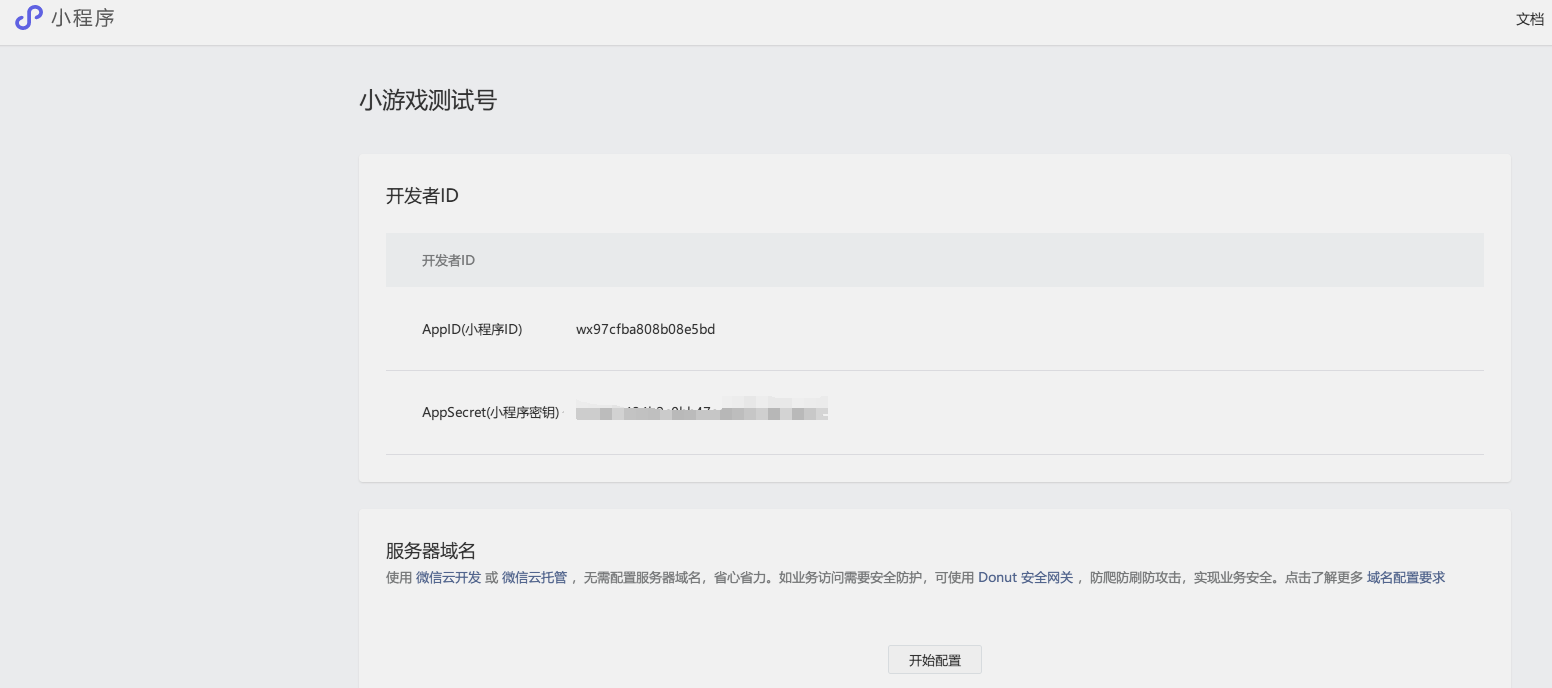 小游戏测试号 : AppID(小程序ID) wx97cfba808b08e5bd