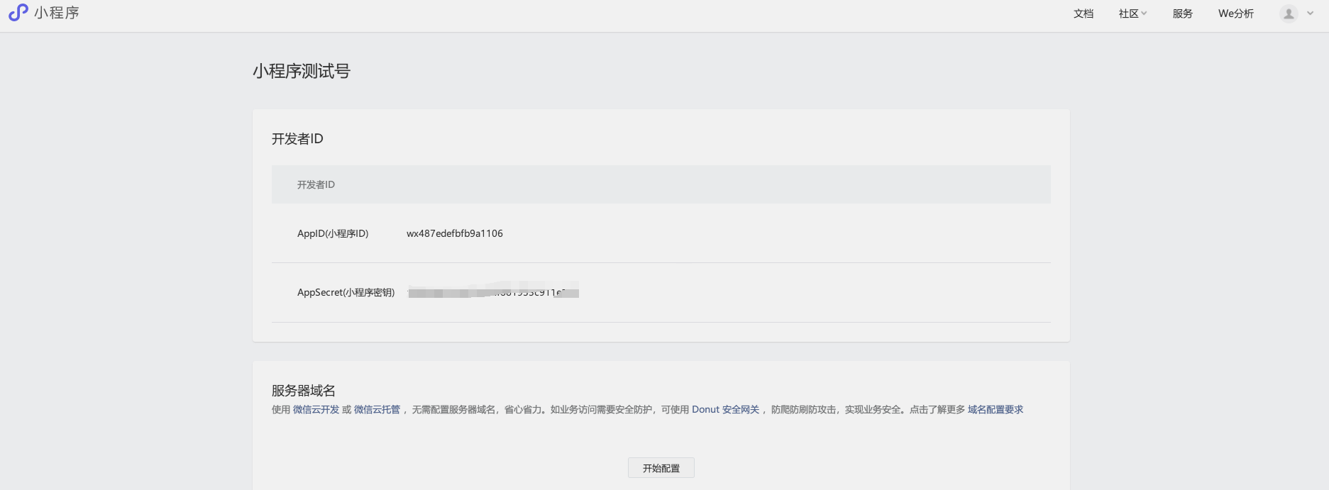 小程序测试号 : AppID(小程序ID) wx487edefbfb9a1106