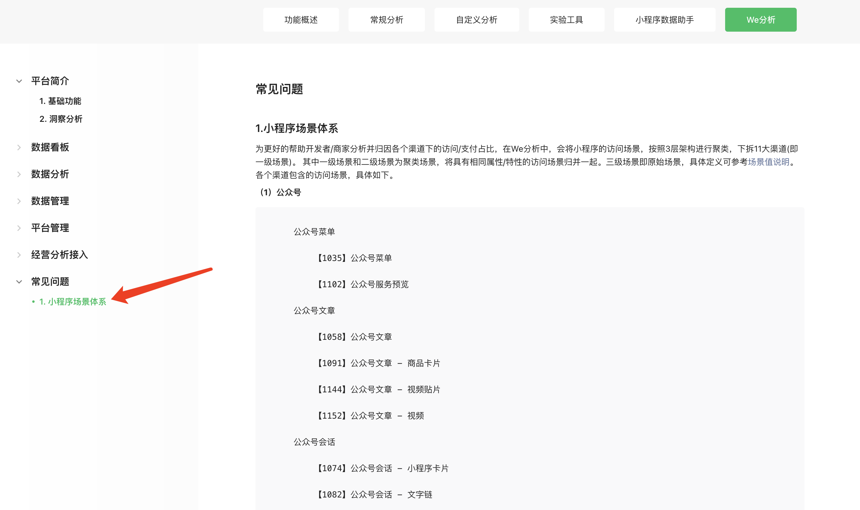 具体可查看文档,链接为:https://developers.weixin.qq.com/miniprogram/analysis/wedata/FAQ.html#_1-%E5%B0%8F%E7%A8%8B%E5%BA%8F%E5%9C%BA%E6%99%AF%E4%BD%93%E7%B3%BB