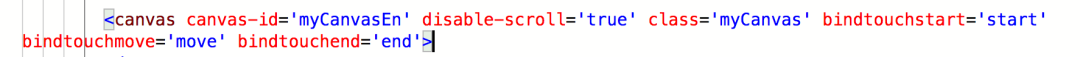 <canvas disable-scroll="true" bindtouchstart="touchStart" bindtouchmove="touchMove" bindtouchend="touchEnd" canvas-id="myCanvas" />