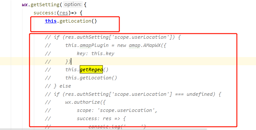 体验版小程序中getSetting里面直接调用,getLocation的api可以返回正确的地理位置信息,但是下面通过if判断后再调用,就会返回fail:频繁调用地理位置啥的报错信息,大佬们帮看看呐~