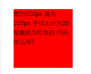 width: 200px; height: 200px; font-size: 20px; background-color: red;