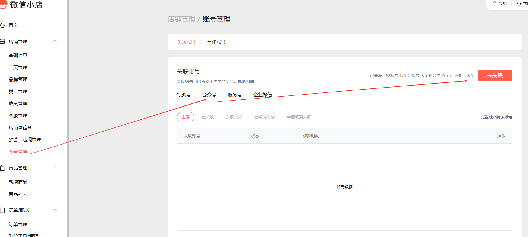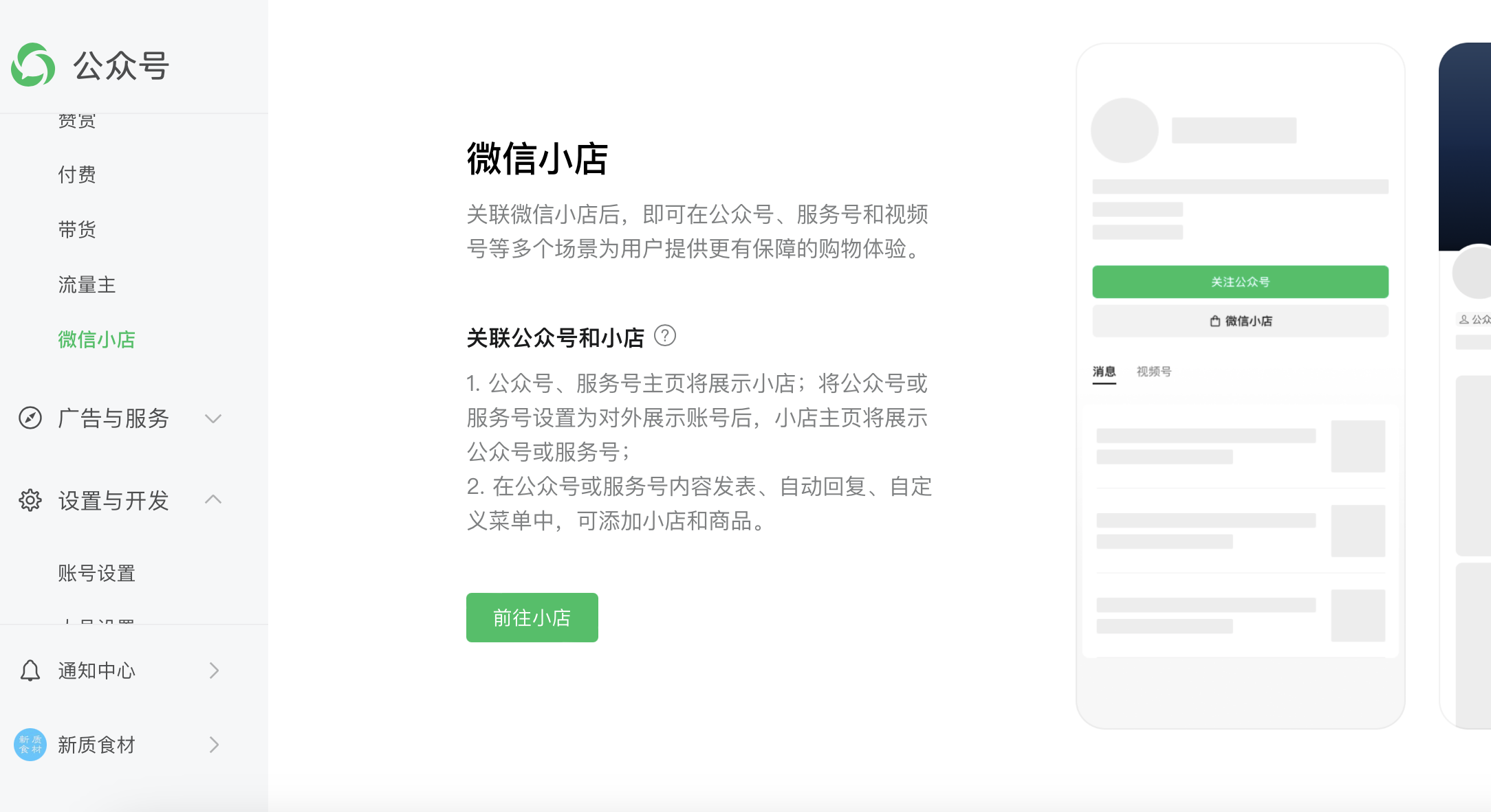 去小店,关联一下公众号