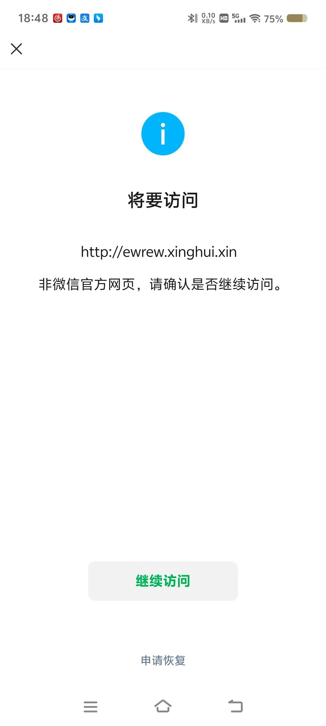 你好,经核实,域名ewrew.xinghui.xin被手机管家拦截,此处只处理被微信暂停提供微信内直接访问的服务的外部链接的申诉问题,建议登录手机管家官网【http://gj.qq.com/online_server/complain_url.html】自行申诉,知悉。