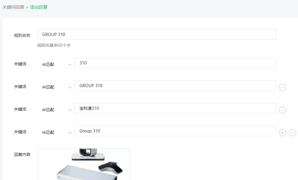 你好,能否提供相关公众号原始ID,其中一个关键词的设置截图给我们查看