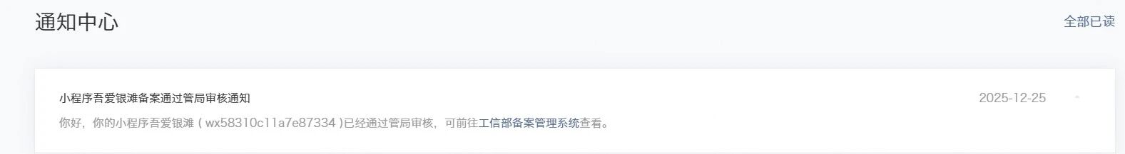 你好,1)当前小程序APPID: wx58310c11a7e87334备案已通过管局审核。