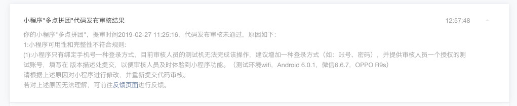 审核结果如上,之前一直都能过,目前不知道是不是微信审核那边规则调整了。