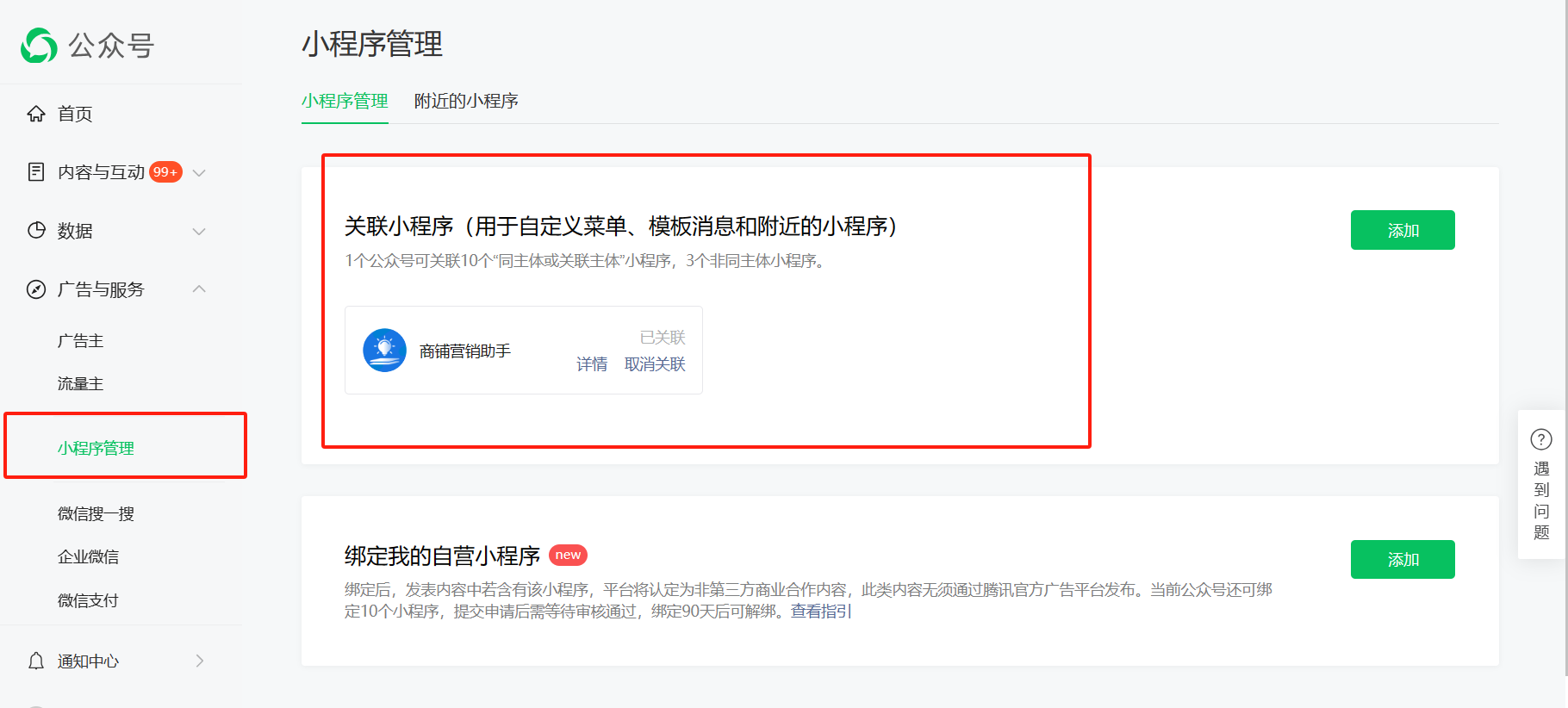 微信公众平台官网:https://mp.weixin.qq.com/,使用公众号的管理员账号进行登录。2.在左侧菜单栏中选择“开发-开发设置-开发者工具”。3.在开发者工具中选择“小程序管理”,即可进入小程序后台。4.如果您是第一次登录小程序后台,则需要先进行小程序绑定。在小程序管理页面中,点击“添加小程序”,输入小程序名称和AppID,即可完成绑定,并进入小程序后台。5.登录小程序后台后,您可以进行小程序的配置、发布、数据统计等操作