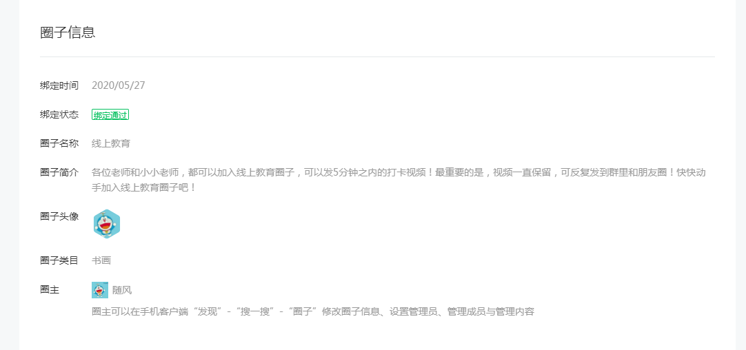 公众号也关联了创建的圈子。