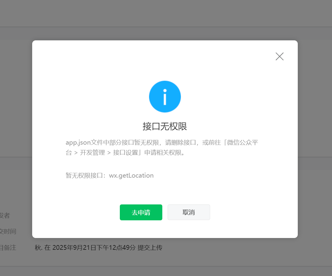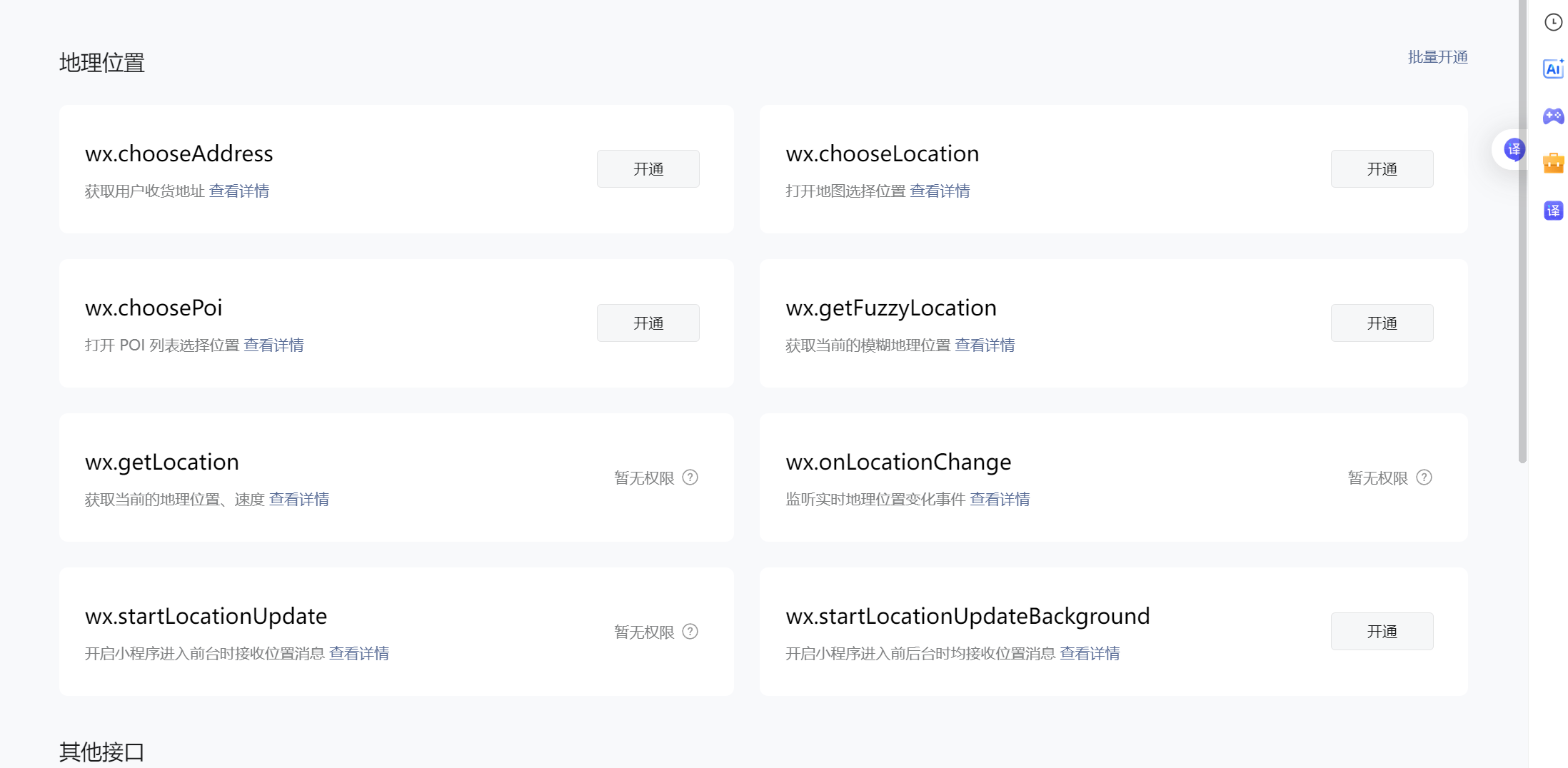 你好,申请wx.getLocation接口需同时满足类目开放范畴和接口使用场景开放范畴两个条件才可通过审核,建议在提交接口审核时详细描述下申请接口在小程序内业务场景使用的必要性,并提供小程序内申请接口相关截图和完整录屏(含小程序昵称)辅助审核,以便快速通过审核。开放范畴详情参考:https://developers.weixin.qq.com/miniprogram/dev/api/location/wx.getLocation.html