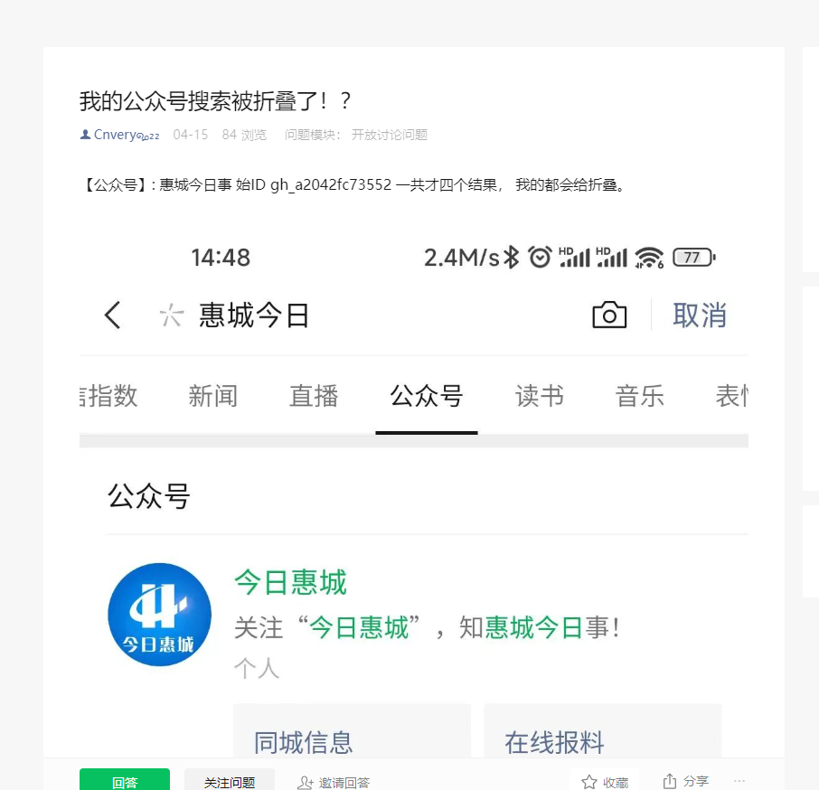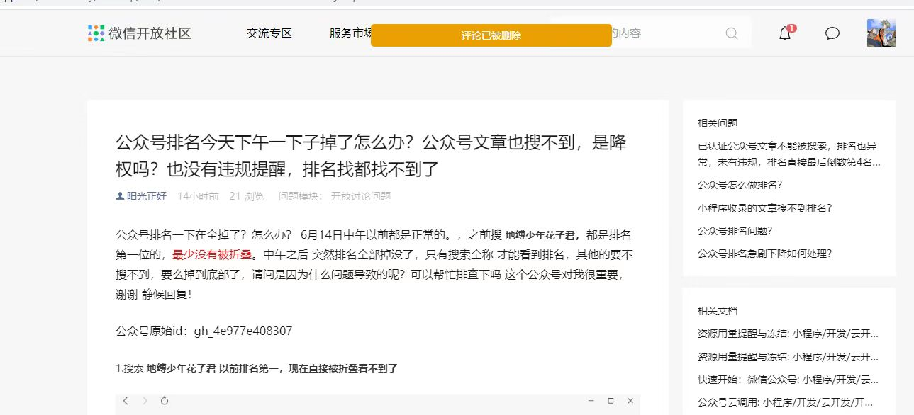 公众号排名一下在全掉了?怎么办? 6月14日中午以前都是正常的。,之前搜 地缚少年花子君,都是排名第一位的,最少没有被折叠。中午之后 突然排名全部掉没了,只有搜索全称 才能看到排名,其他的要不搜不到,要么掉到底部了,请问是因为什么问题导致的呢?可以帮忙排查下吗 这个公众号对我很重要,谢谢 静候回复!