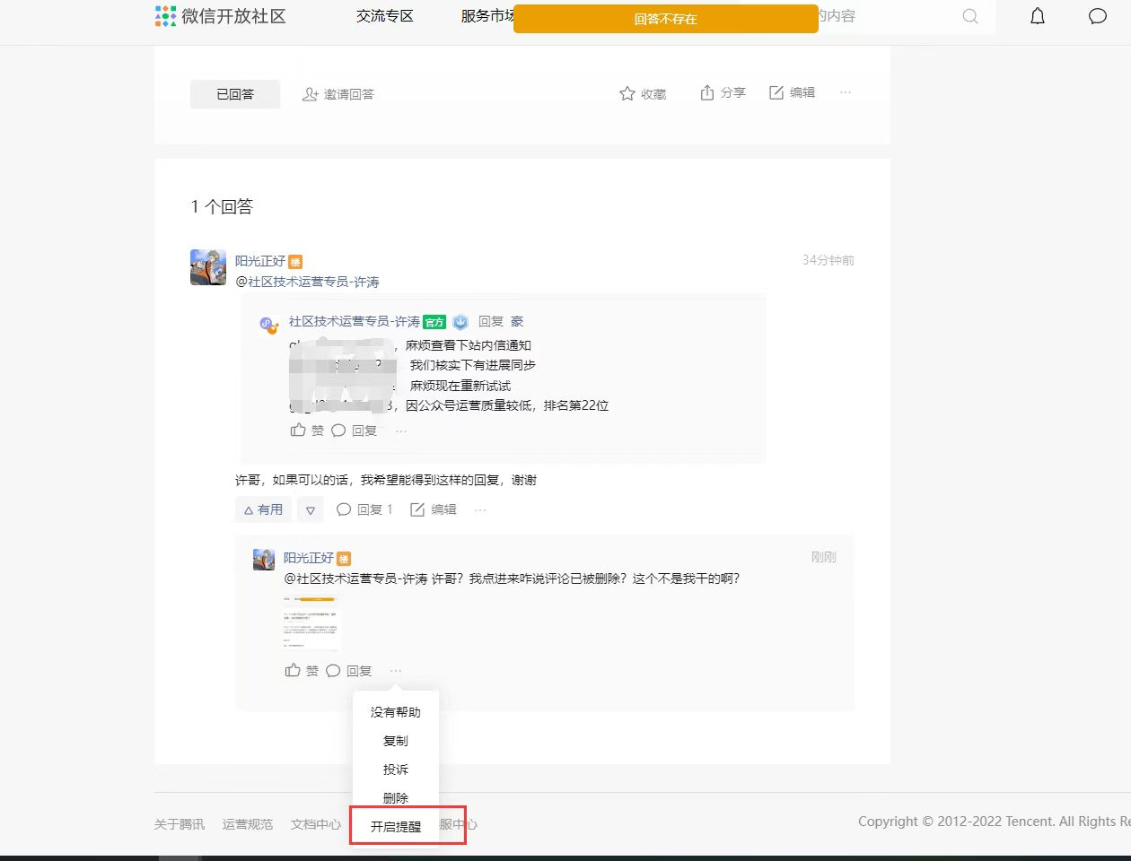 问题二:好不容易等到官方的回复,结果点进去就是评论已经被删除(我没有进行任何操作)。都不知道回复的是啥。