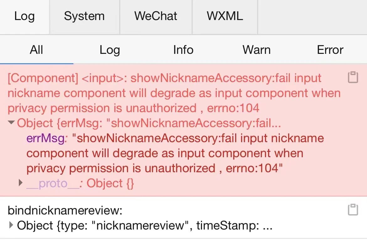 这个报错是没有同意隐私授权弹窗,<input type="nickname">降级为 <input type="text">。