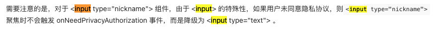 <input class="weui-input" bindnicknamereview="bindnicknamereview" type="nickname"/>