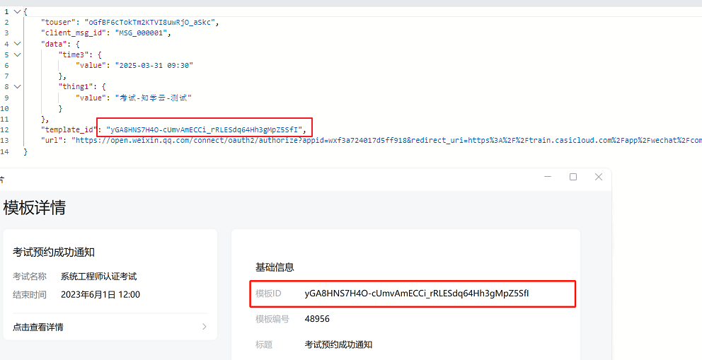 考试预约成功通知,推送模板消息,接口返回成功。但是用户未收到信息。