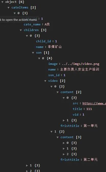 把A页面video[]通过点击事件传递到B页面videoList[]中,已经传递过来了,怎么写wxml让firsttilte显示出来?