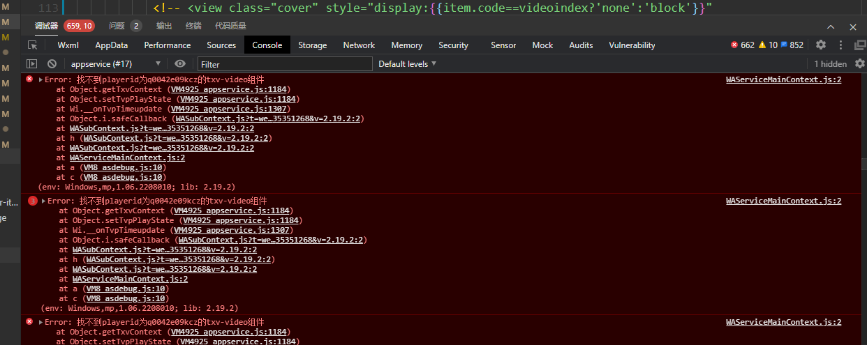 不过上述 Bug 不影响视频播放。但当我在获取 `TxvContext.getTxvContext()` 时会提示 找不到 `playerid为****的txv-video组件`。我已经查阅了所有文档。`playerid` 我是固定了的,不存在动态获取情况,但就是获取不了插件的上下文,操作不了视频播放。不明白是否跟上面问题是关联的。请官方释疑,谢谢