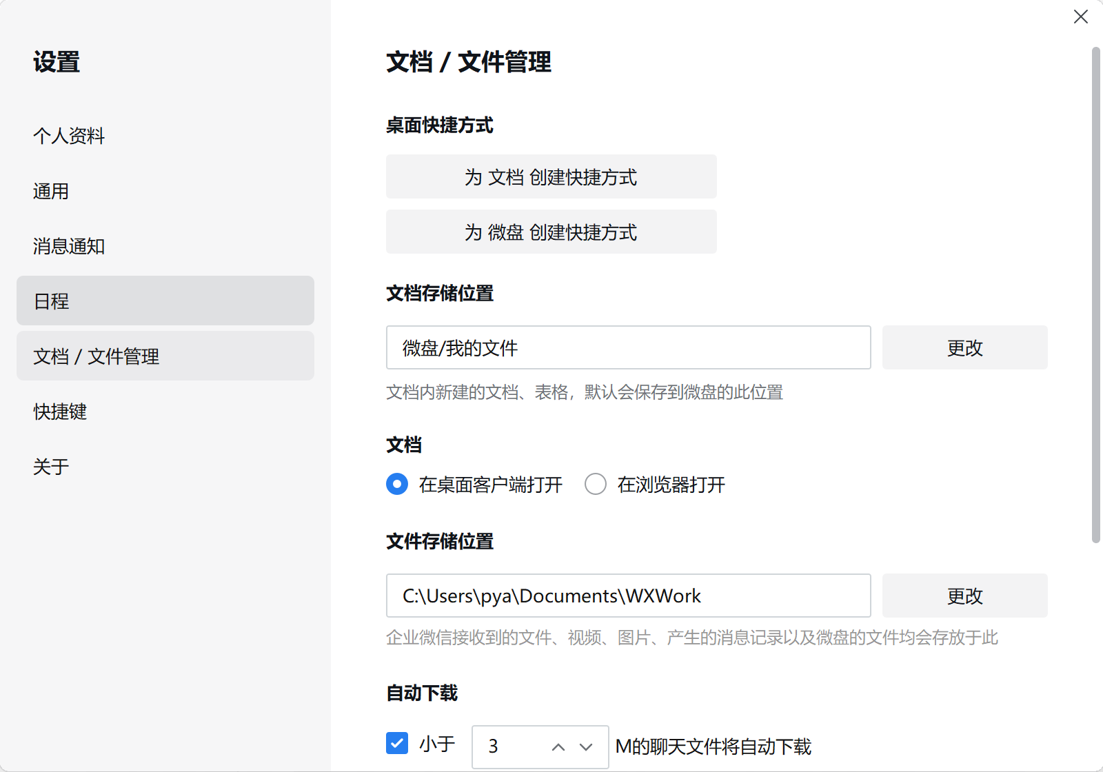 哈哈哈 我知道怎么解决了。在企业微信里点击头像--设置--文档/文件管理:把文件存储位置修改到系统盘之外的磁盘,基本就能解决