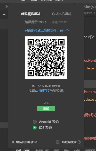 手机要么报errocde-1,要么链接成功但是开发者工具没反应,二维码还在这摆着。