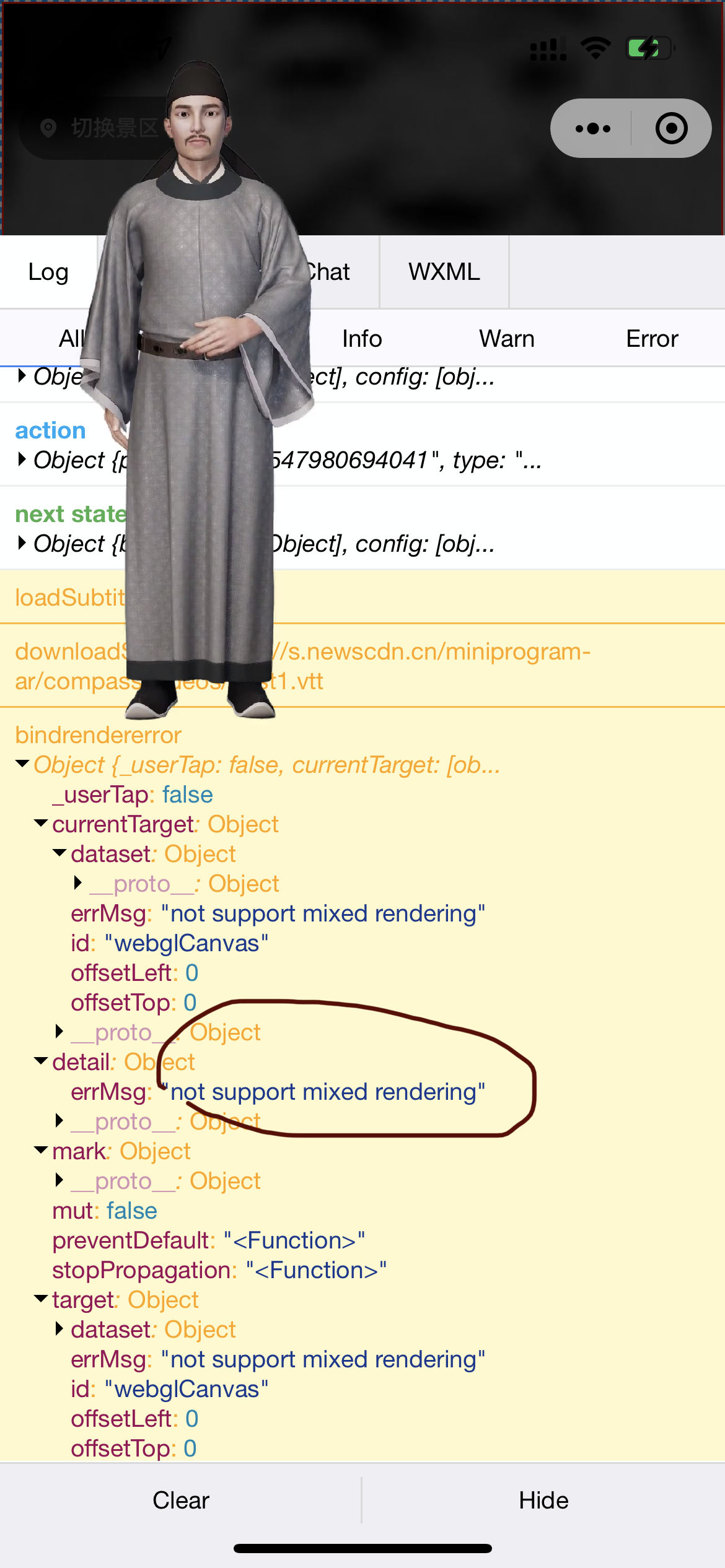 我遇到的是安卓,在map上加载view,没有加载出来,也报这个错 not support mixed rendering。好坑啊。还不如不开放同层渲染呢,还得改回去。