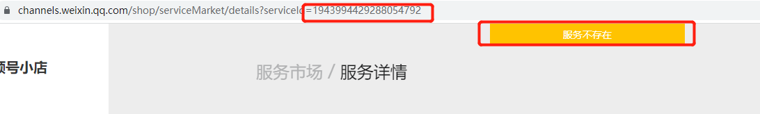 如下图所示,在在视频号小店服务市场点击对应的测试服务会显示服务不存在,然后手动修改serviceid之后可以进入到对应的服务界面,购买体验服务也正常,但是使用code进行登陆验证的时候就会返回code不存在或已过期。