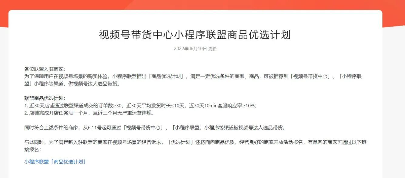 建议用视频号小店吧。也有视频号优选联盟功能文档介绍的