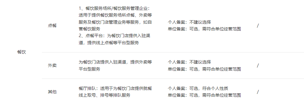 奶茶店小程序点餐使用,服务内容选的餐饮-点餐,被驳回了