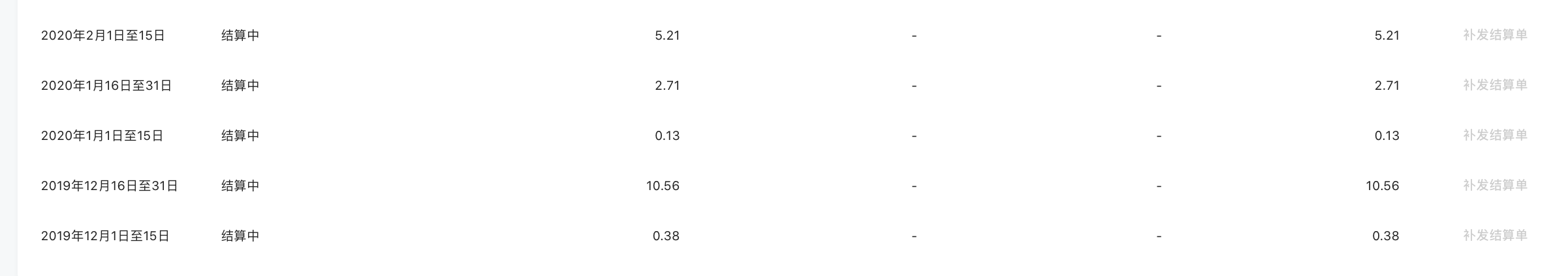 您好,核实该帐号没有及时补充财务,帐号是在2020.02月下半月才补充的财务资料,2020.02月下半月开始才会有结算单,若前期有产生收益,后续我司会统一处理补结的。补结与正常结算的流程是不一样的,补结流程涉及的程序较多,时间较长,补结成功后会下发结算单至对应的结算邮箱的,还请耐心等待后续留意。