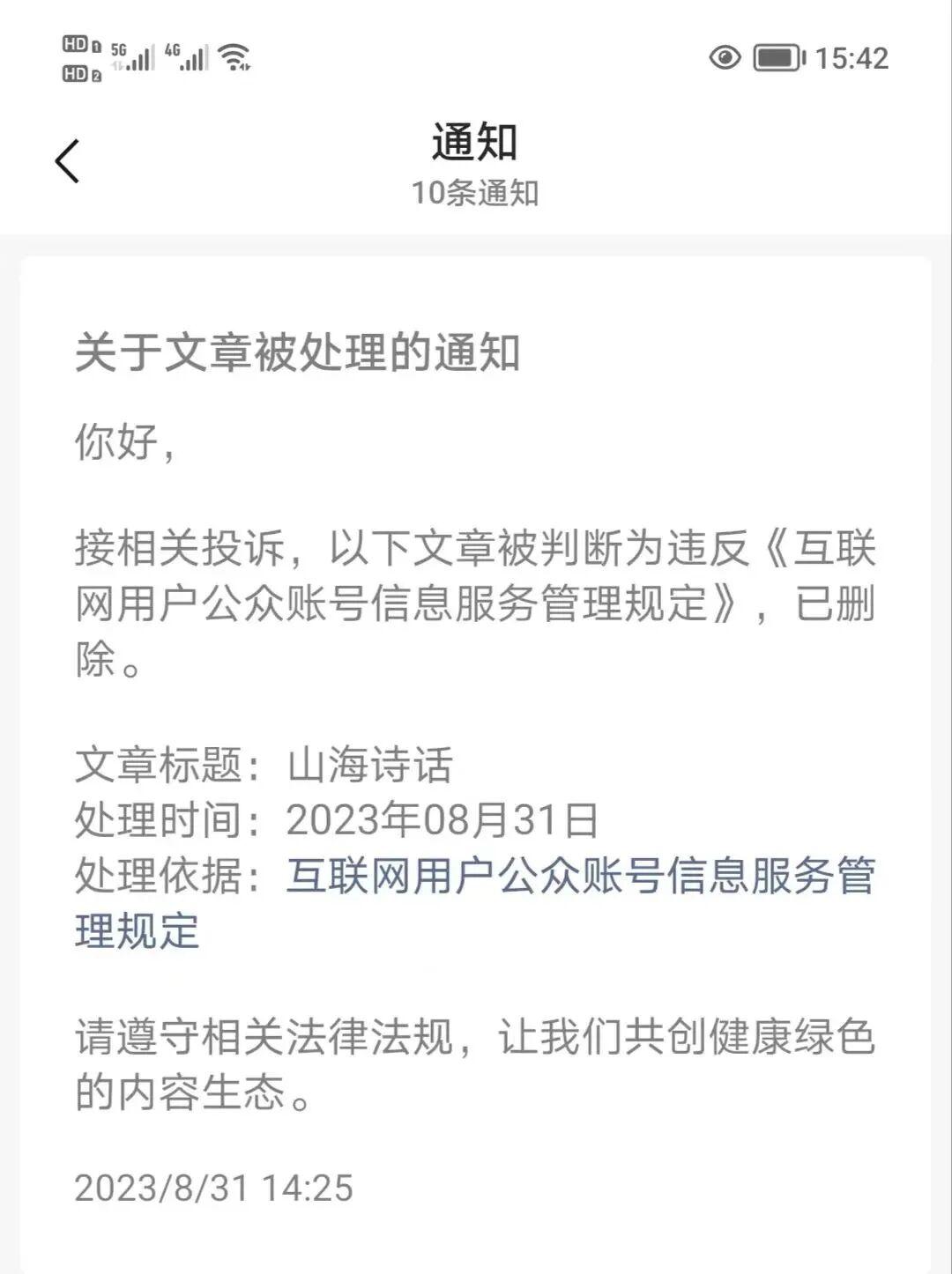 2023年7月15日出刊的《山海诗话》2023年第13期(总第35期),据说被投诉,按有关规定给予删除。想了解一下是接到了什么方面的投诉?哪些方面有违规的问题?