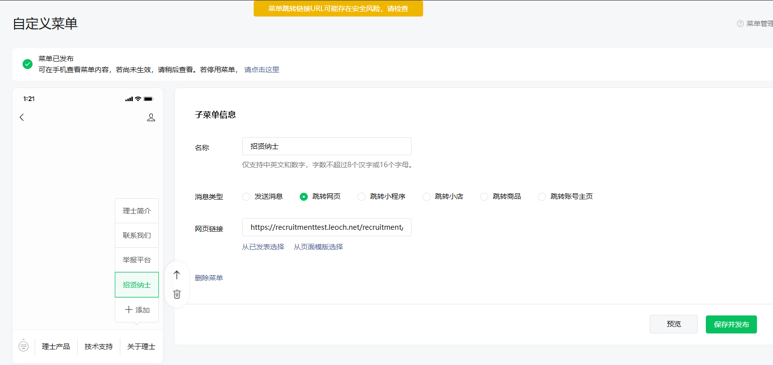 https://mp.weixin.qq.com/s/ATmqiHN05JlKo6rZV7ZBJQ 您好,可以帮我审核一下吗,我的也是菜单跳转链接URL可能存在安全风险,请检查