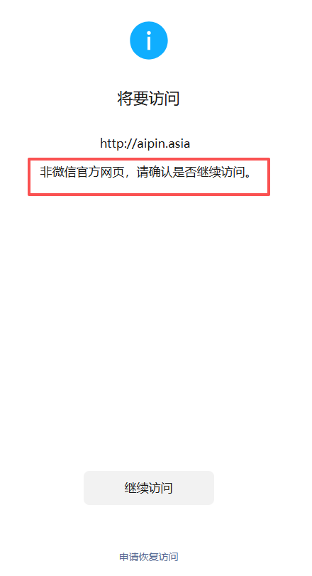 提示非微信官方网页,这个能帮我取消吗,我这个域名链接主要是产品展示页面,没有违规内容