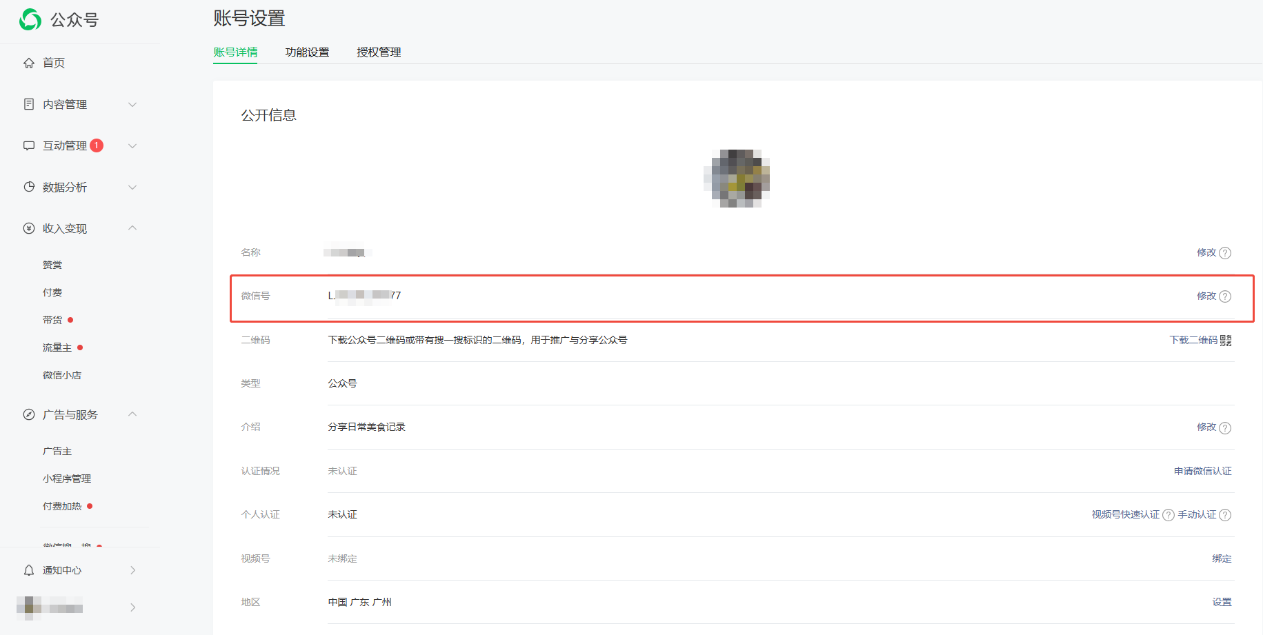 这里显示的微信号不是指微信的【微信账号】,是指公众号里面有个设置叫【微信号】,通过此设置可以输入设置的【微信号】搜索到此公众号。
